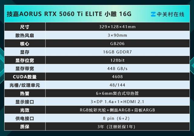 技嘉AORUS系列向来以堆料扎实+散热强劲为标签,技嘉AORUS GeForce RTX 5060 Ti ELITE 小雕16G(下简称技嘉RTX 5060 Ti小雕16G)也不例外。