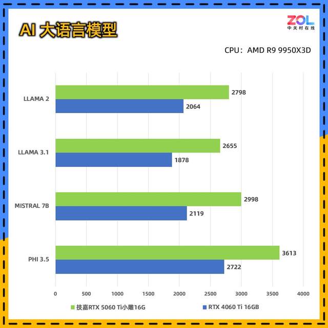 技嘉RTX 5060 Ti小雕16G的显存容量达到了16GB,非常适合AI大语言模型的发挥,在面对较大的模型时同样可以驾驭。