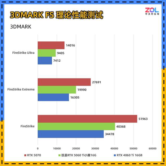 PortRoyal是3DMARK中专门针对光追性能的测试项,技嘉RTX 5060 Ti小雕16G相较RTX4060 Ti 16GB的提升约为33%。