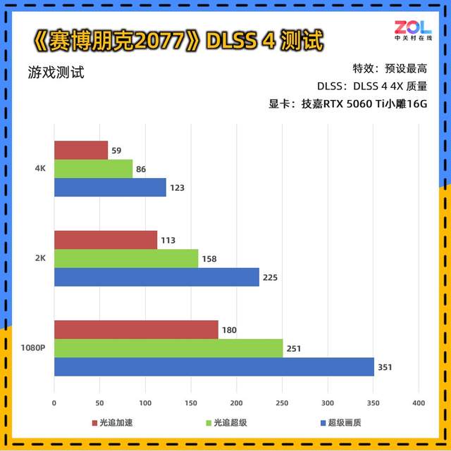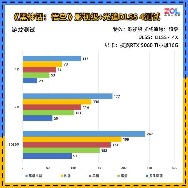 在Benchmark中融合了非常多的多人团战,且技能效果华丽,技嘉RTX 5060 Ti小雕16G在4KDLSS 4 4X多帧生成模式下,均可达到电竞级高帧率。