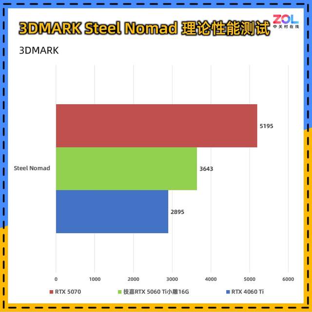 本次测试新增了3DMARK Steel Nomad理论测试,它是基于DirectX 12 API的非光线追踪基准测试。