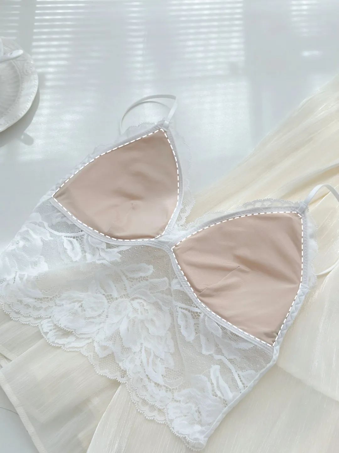 它整体除了胸垫之外,就只有一层蕾丝面料在!