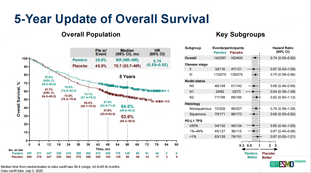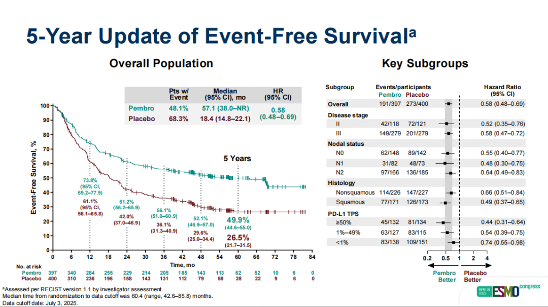 [2]Heather Wakelee, et al. Perioperative pembrolizumab in early-stage non-small- cell lung cancer (NSCLC): 5-year follow-up from KEYNOTE- 671. ESMO, 2025, LBA67.