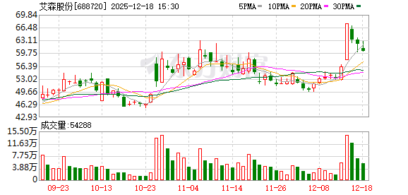 证券时报·数据宝统计显示,艾森股份今日收盘价为60.33元,下跌2.96%,日换手率为9.63%,成交额为3.32亿元,全天主力资金净流出1450.13万元,近5日该股累计上涨13.15%,近5日资金合计净流出5212.01万元。
